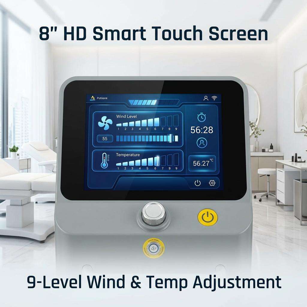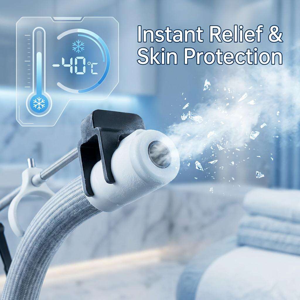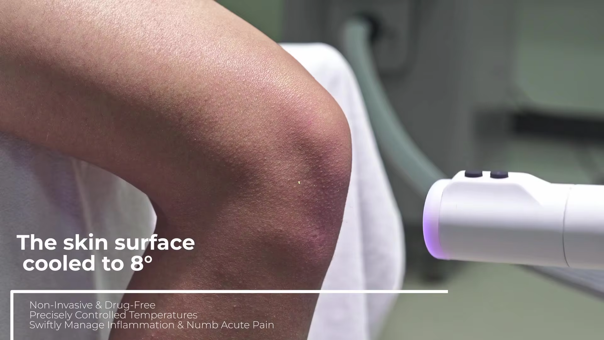 Fejlett, -8 °C és -40 °C között szabható hűtőrendszer, amely gyorsan eltávolítja a hőt a bőrfelületről.